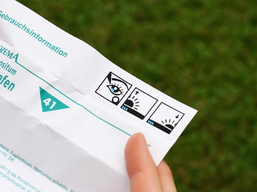 Piktogramme mit Hinweisen zur Einnahme von Medikamenten für Analphabeten