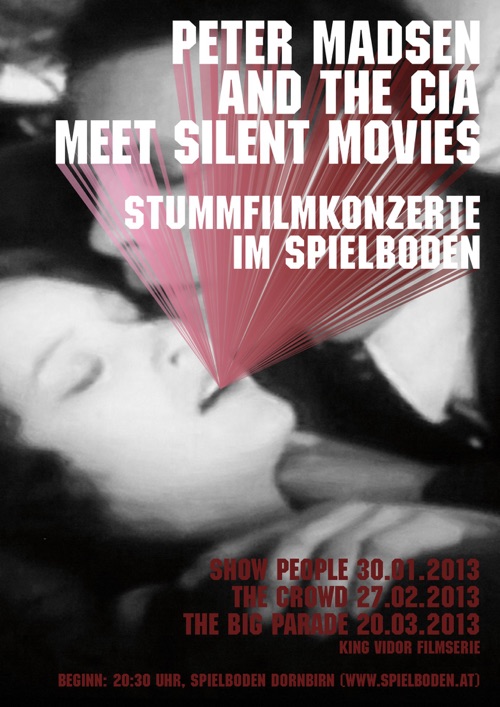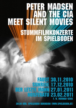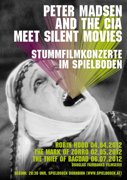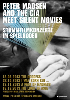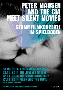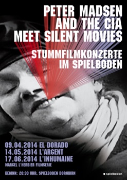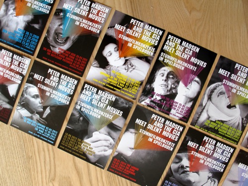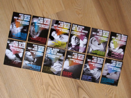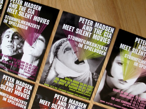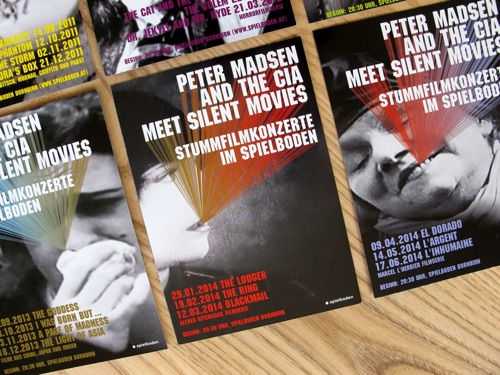 Plakate und Flyer für Peter Madsens Stummfilmkonzerte am Spielboden